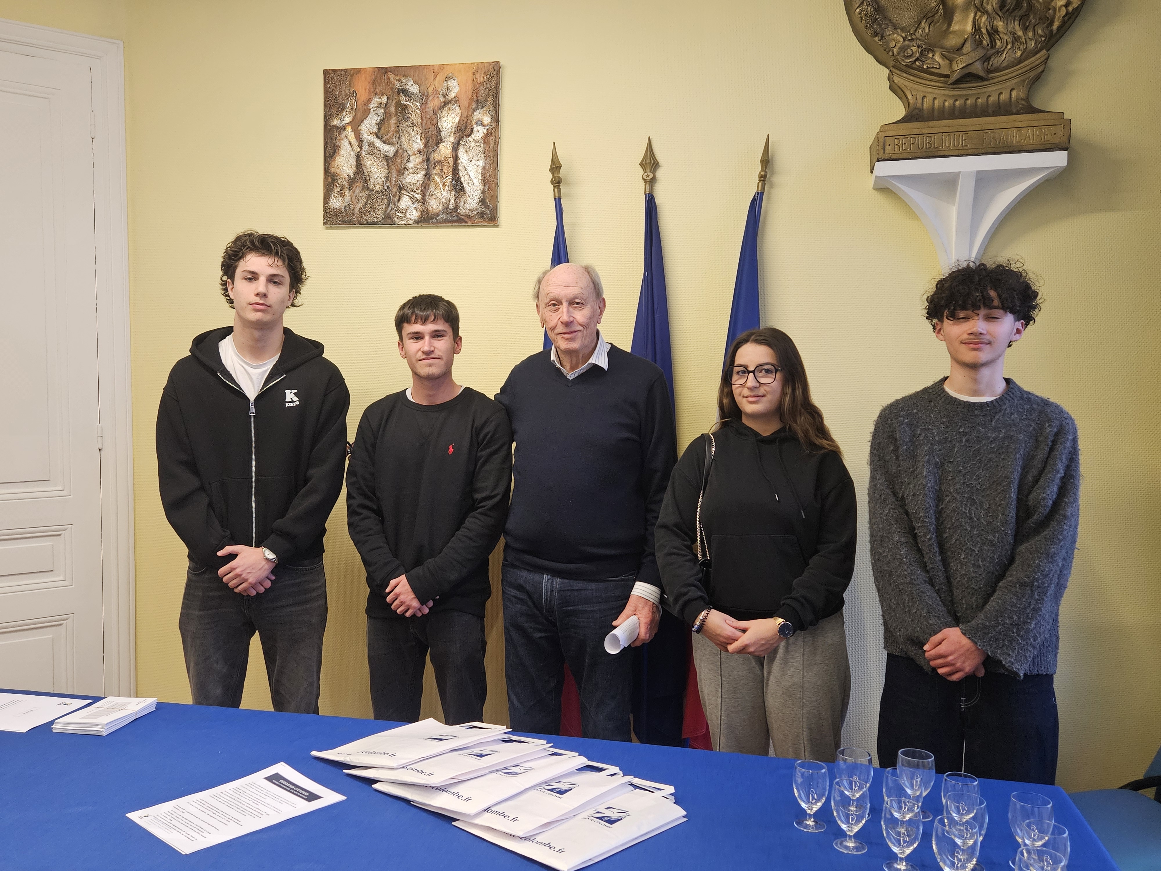 Monsieur Le Maire, Marc Deleigue accompagné des élus et de Madame Candela en charge entre autres des élections, ont reçu les jeunes citoyens nouvellement inscrits sur la liste électorale, qui participeront au prochain scrutin le Dimanche 09 juin à l’occasion des élections européennes. Ce temps fort a été l’occasion de rappeler les principes fondamentaux de la république et de la démocratie et de donner la parole à la jeunesse colombine.